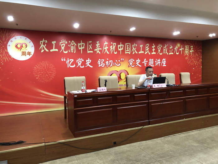 8月5日,为庆祝中国农工民主党成立九十周年,农工党渝中区委特举办“忆党史 铭初心”党史专题讲座。农工党区委各基层组织代表性党员、新党员参加了会议,中共渝中区委常委、中共渝中区委统战部部长章琳,农工党市委常委兰廷春应邀出席了会议。